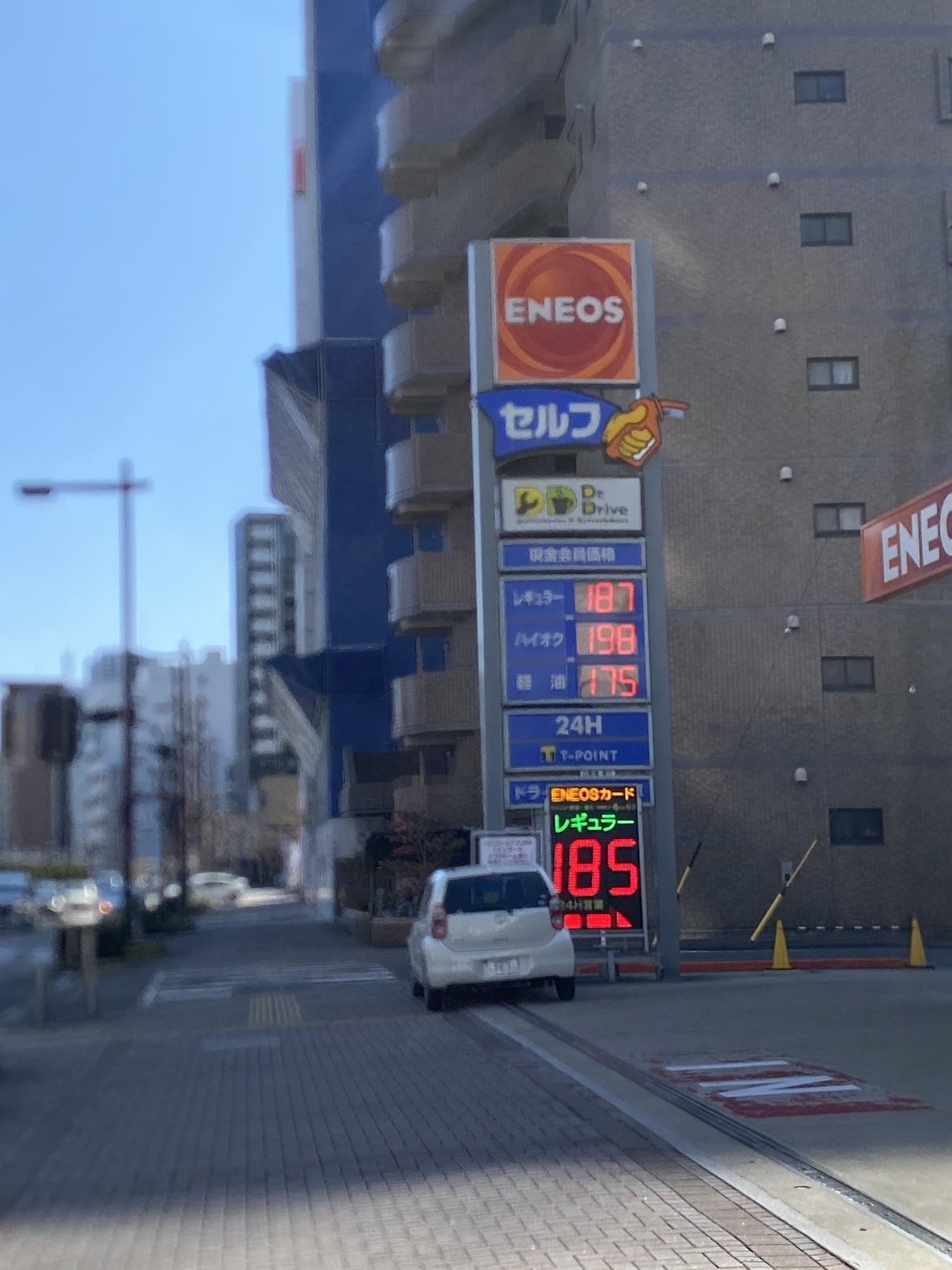 『187円/L』と過去に見たことのない価格で、ハイオクは『198円/L』と